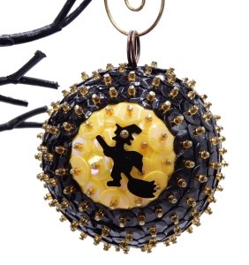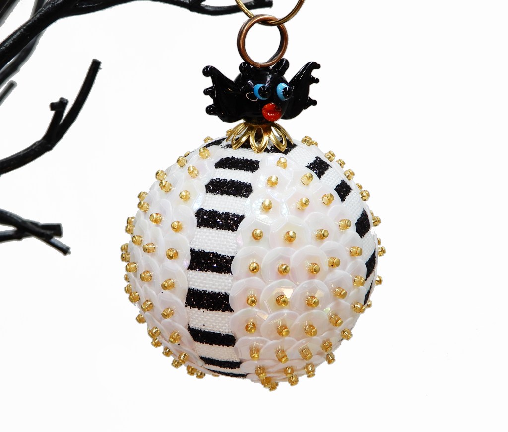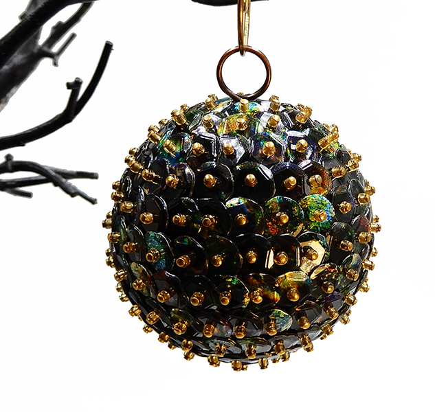 These hand-placed sequin baubles feature spooky and unique colors like the iridescent reflection of an oil spill or the misty swirl of golds & greens that pop when hung on your Halloween tree.