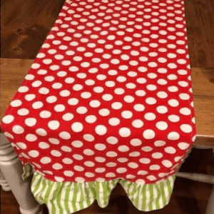 Kailey’s Monogram Shop on Etsy has a beautiful polka dot table runner that is perfect for tree wrapping.