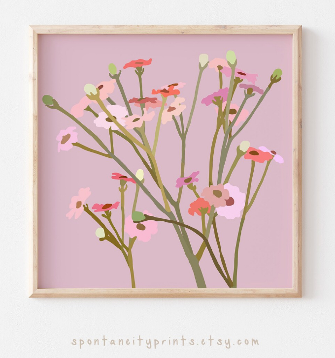 If you don’t want to go as far as literal hearts, then we love the soft pallets in floral prints from Spontaneity Prints over on Etsy.
