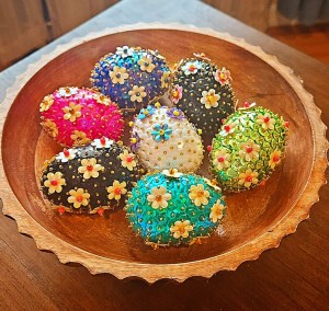 Begin your Easter home transformation by introducing the exquisite beauty of decorative sequin & beaded Easter eggs. Imagine elegant baskets brimming with beaded eggs in a myriad of colors and patterns.