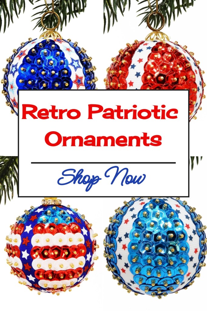 Collect these beautiful, handmade in the USA (in Philadelphia, PA – the birthplace of America) Patriotic ornaments.