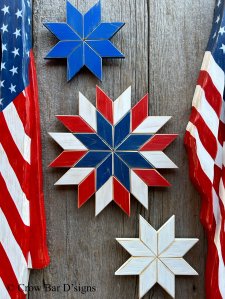 It’s even better when you have them mixed in with family photos as part of a big collage. You can even rest these US flag designs on a mantle along with brass candlesticks and some rustic wooden stars.