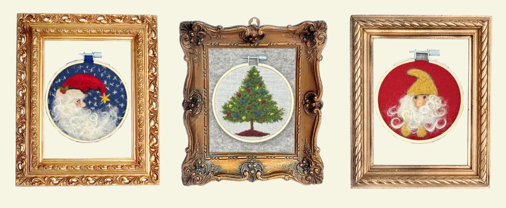 Take your felted art to the next level by placing the embroidery hoops inside vintage picture frames.