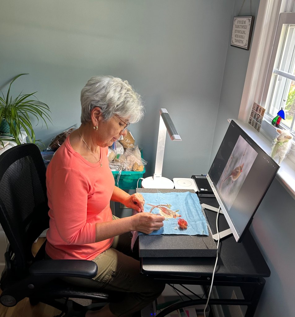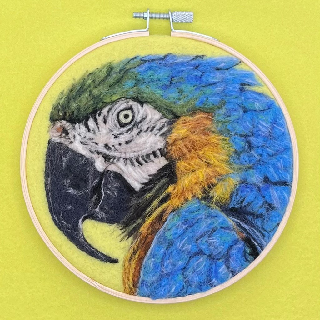 She shared “Needle felting 2D portraits has been such a joy to me. Felting itself is a very meditative art form and I can get lost in creating each portrait for hours. I enjoy creating all different subjects, but my custom memorial pet portraits have particularly been one of my favorites to create. These portraits become a cherished memory and a heartfelt tribute of a beloved part of the family.