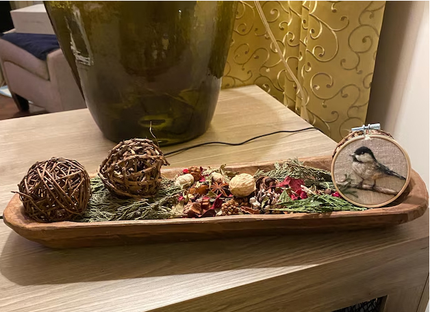 Not ready to commit to hanging your felted pieces on the wall? No problem! Embroidery hoops look charming when propped up on a bookshelf, mantel, or even a tiered tray display. Layer them with books, candles, and small plants for a cozy, curated look.